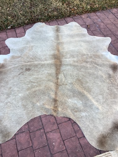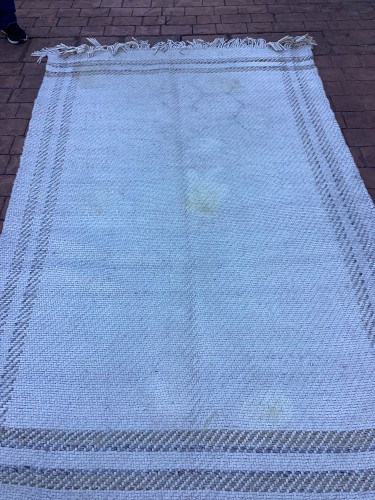 The customer required professional residential rug cleaning services for their home, specifically for a cowhide rug and a white woven area rug that had visible dirt and stains.