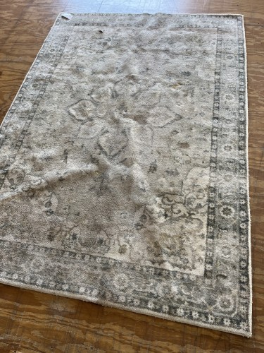 The customer's residential rug had faded areas, heavy to moderate soil accumulation, and nap distortion, requiring professional cleaning.