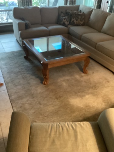 The customer required professional intervention for a residential area rug that exhibited heavy to moderate soil buildup, noticeable faded areas, and deep indentations caused by heavy furniture marks.
