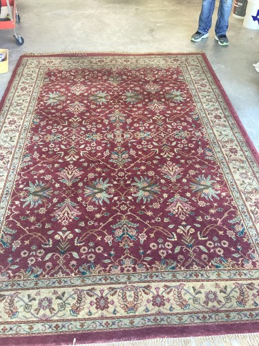 The customer sought professional restoration for a residential area rug that was impacted by moderate soil accumulation, visible faded sections, and persistent indentations from furniture marks.