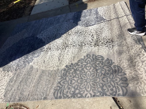 The customer sought professional rug cleaning due to moderate soil accumulation throughout the fibers. The rug also showed visible signs of wear, including faded areas, furniture indentations, and white knots that had become prominent over time.